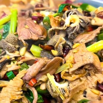 不外临了制品上桌看着还挺厚味的,麻辣鲜香,张蕾总结爆炒生料便是“广西版麻辣香锅”,张蕾和她父母齐很心爱这说念菜。