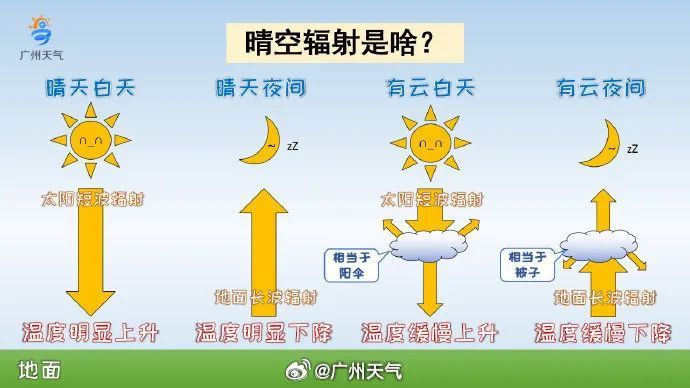 所谓晴空辐照,便是指夜间无云或少云的情况下,大地会散热而降温的征象。因为云层就像一床被子,在晚上起到保温的作用,淌若晚上莫得云概况很少云,仿佛睡眠没盖好被子,夙夜会以为冷。