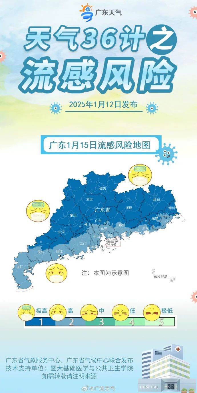 1月15日,粤西、珠江三角洲西部、韶关和清远市县稀薄小雨转多云,其余市县多云转好天。最低气温:粤北偏北市县8~11℃,南部市县14~16℃,其余市县11~14℃。