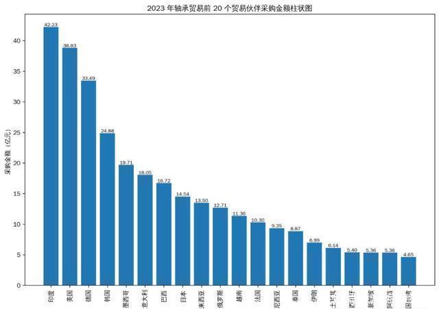请公共先来盲猜一下,2023年和2024年,从我国采购轴承金额最大的国度,会是谁? 许多东说念主第一反应可能是好意思国,毕竟工业强国、汽车大国;也有东说念主会思到德国,毕竟机械制造、汽车零部件皆全球非凡;致使有东说念主会说日本,发明泡面的民族,难说念不是轴承大户? 谜底揭晓之前,先别急着拍大腿,因为着实的第又名,频频不是你思的阿谁国度。 好,当今揭晓谜底——相连两年从我国采购轴承金额最大的国度,果真是 印度 ! 没错,不是好意思国,不是德国,也不是日本,而是印度! 你可能会思:“印度?工业好像还不够进展啊?” 别急,数据不会骗东说念主,咱们用柱状图把前20大采购国皆摆出来,你就能直不雅地看到,印度一骑绝尘,把其他大国远远甩在死后。