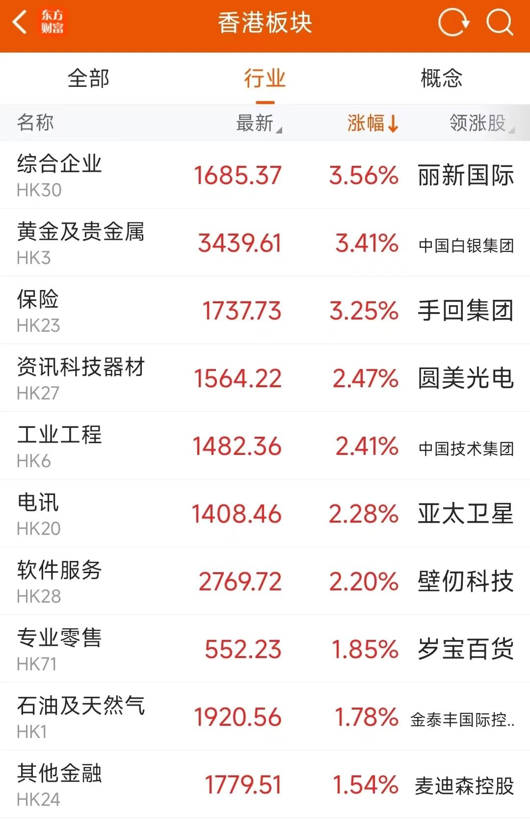 通盘盘面来看,1月2日今日,港股概述行业(+3.56%)、黄金及贵金属(+3.41%)、保障(+3.25%)、资讯科技器材(+2.47%)、工业工程(+2.41%)等行业涨幅靠前。