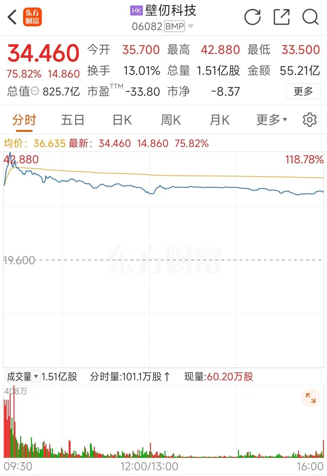 而在港股2026年的第一个来去日,有“开年第一股”“港股GPU第一股”之称的壁仞科技成为了阛阓的焦点。该股1月2日开盘大涨82.14%,盘中最大涨幅达118.78%,收盘涨幅为75.82%,总市值为825.7亿港元。